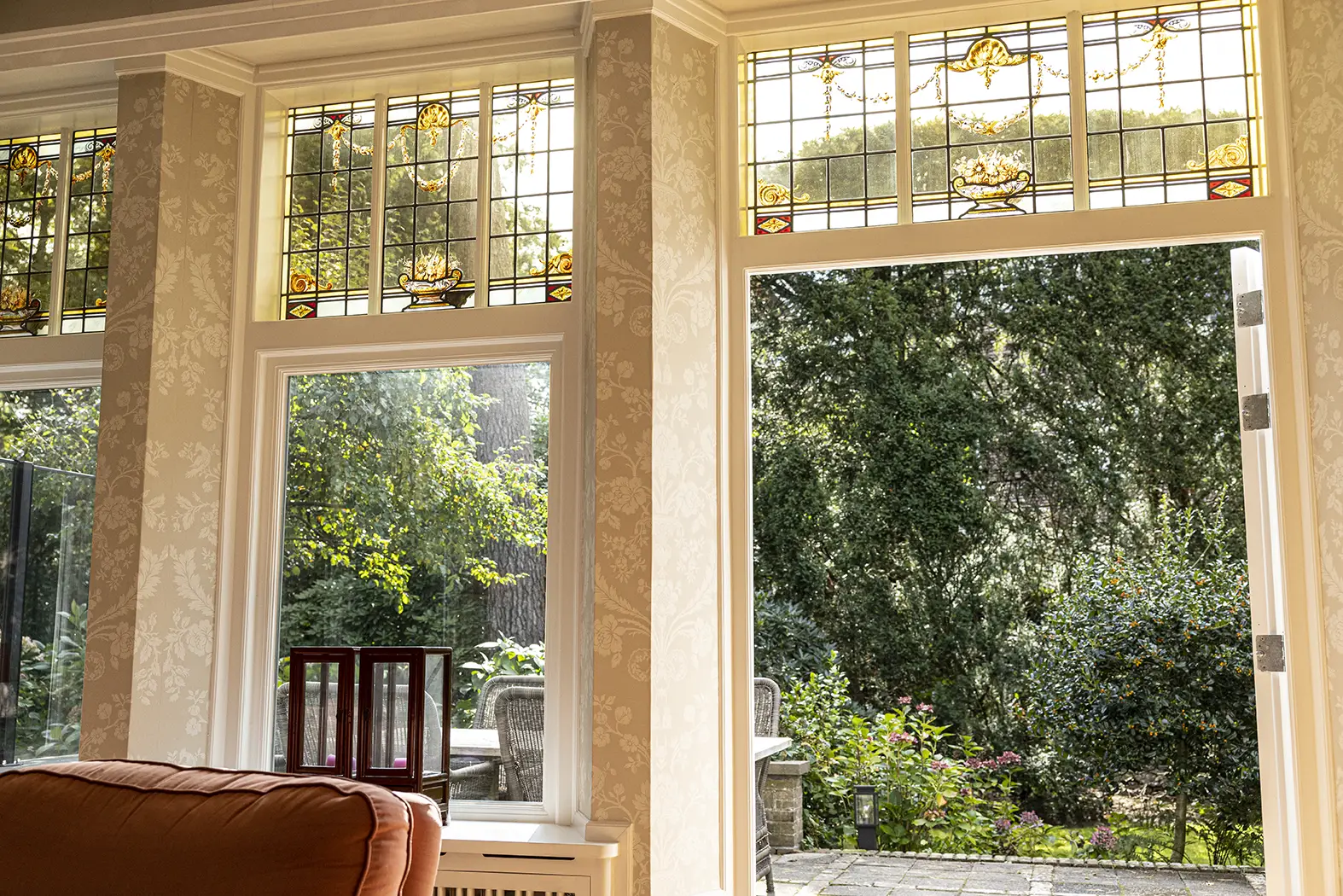 Door het glas in lood te herintegreren combineer je klassieke stijl met wooncomfort.