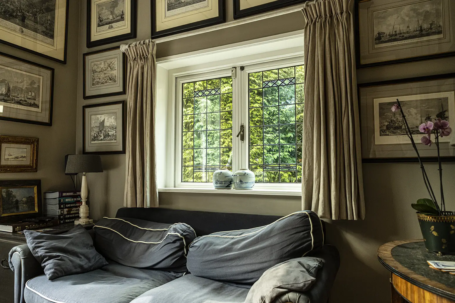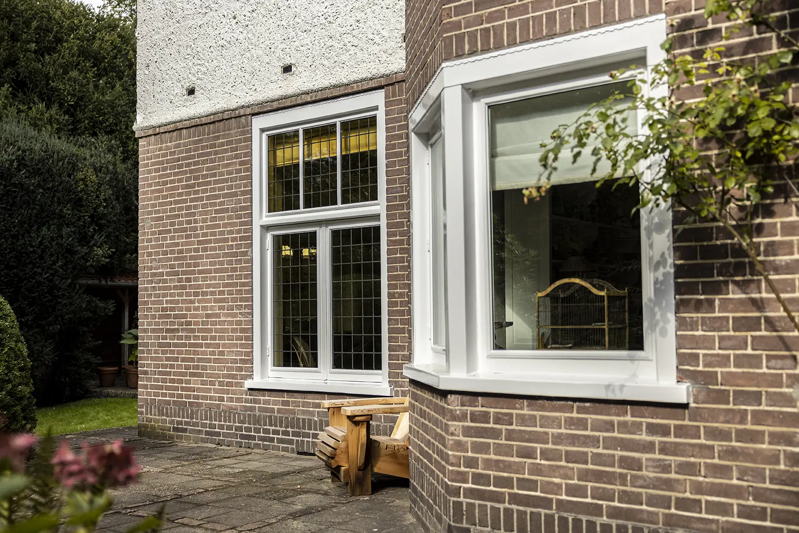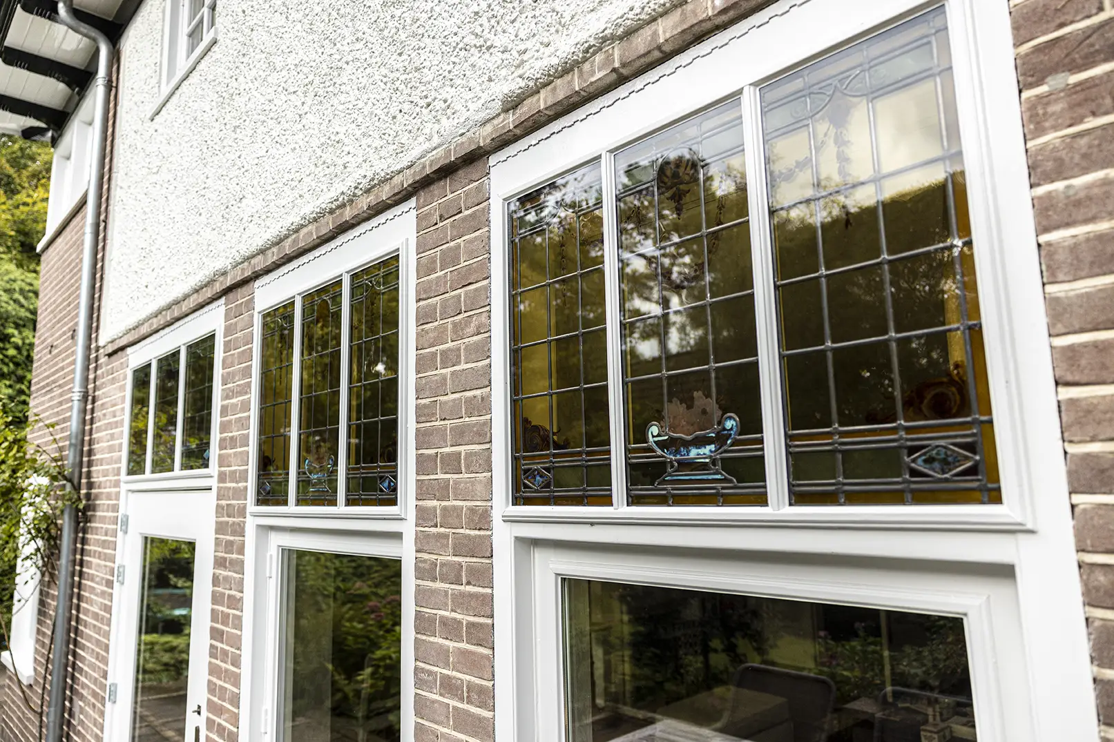 Veel kozijnen waren nog voorzien van enkel glas, soms zelfs met origineel glas-in-lood. De wens van de klant was duidelijk: meer comfort, maar mét behoud van het historische karakter. Daarom hebben we ervoor gekozen het glas-in-lood te integreren in moderne HR++-ruiten. Zo brachten we twee werelden samen: geen kou of hoge stookkosten meer, maar wél de uitstraling van vroeger.